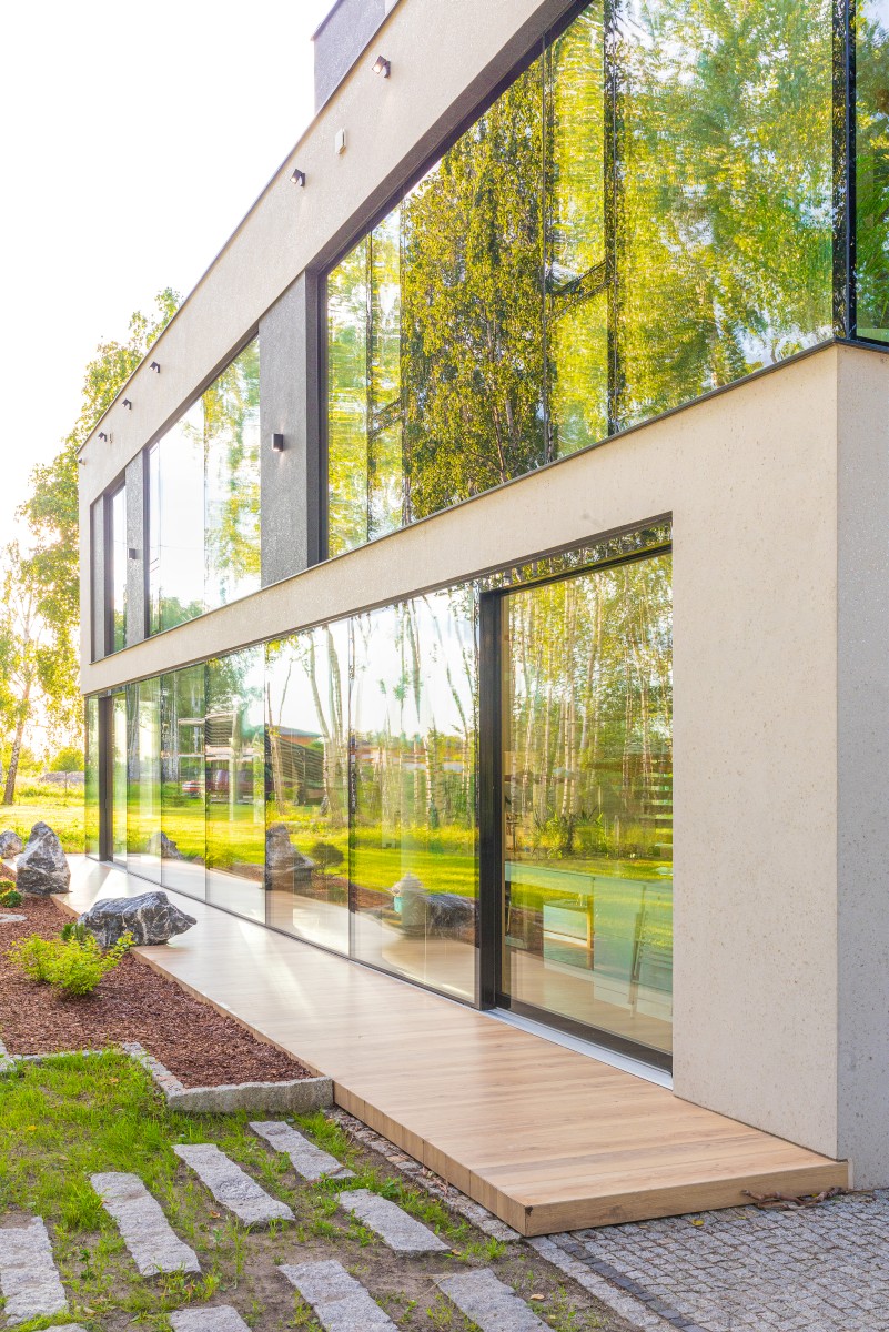 Large glazing is a synonym of modern architecture. Until recently, such solution was typical for office buildings, but nowadays it can also be found more and more often in modern housing construction. Large-size windows, in addition to their effective appearance, also have a number of advantages that affect the comfort of use. If you want to create a unique and functional arrangement, we recommend Pinus TotalGlass windows. It is a modern woodwork system that combines elegance and modernity.